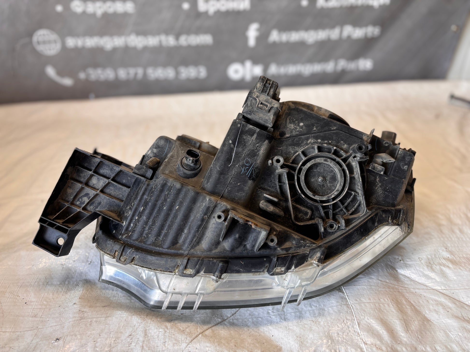 Фарът е в добро състояние – стъклото е без пукнатини, корпусът е без удари, всички захвати са здрави.